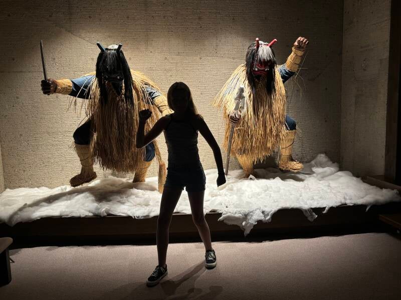 On this visit, we got to sit in a traditional style house and go through a reenactment of the ceremony. Liam got scolded by the Namahage and in the little Japanese I could understand, they wanted to know if he was listening to his elders. It was so much fun!